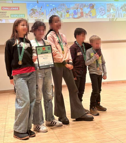 Am Samstag, den 17.01.2026, präsentierten die Schülerinnen und Schüler ihre Arbeiten einer dreiköpfigen Jury. Im Anschluss stellten sie erleichtert fest, dass die Präsentation „gar nicht so schlimm“ gewesen sei. Für ihre tollen Leistungen wurden alle fünf Kinder mit Medaillen und einer Urkunde ausgezeichnet. Sehr zufrieden und stolz traten alle den Heimweg an. Da die Schule weitere neue Roboter bestellt hat und diese zum Teil bereits erhalten hat, dürfen sich die insgesamt zehn Kinder der Robotik-AG in den kommenden Wochen darauf freuen, diese ausgiebig zu testen.