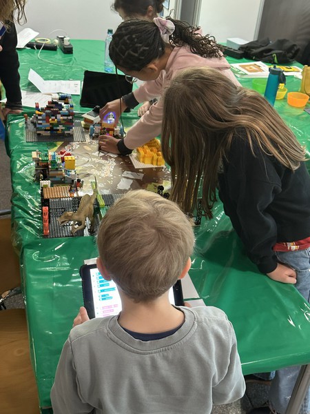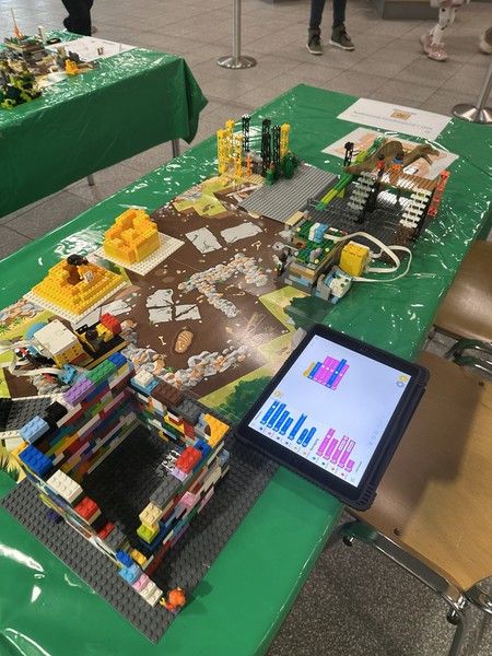 Fünf Schüler:innen aus verschiedenen 3. Klassen sowie einer 4. Klasse nahmen an dem Wettbewerb teil. Entsprechend groß war die Aufregung. Bereits viele Wochen zuvor hatten sich die Kinder intensiv auf den Wettbewerb vorbereitet. Passend zum diesjährigen Thema „Unearthed“ (Ausgrabungen) bauten sie mit Lego unter anderem das Kolosseum, eine Pyramide, das Skelett eines Dinosauriers, ein Ausgrabungsfahrzeug sowie eine Ausgrabungsstätte. Manche dieser Modelle wurden mithilfe einer App auf dem iPad programmiert. Darüber hinaus forschten und recherchierten die Kinder selbstständig zum Thema Archäologie. Die Ergebnisse hielten sie auf Plakaten fest, auf denen verschiedene Berufe aus dem Bereich der Archäologie vorgestellt wurden.